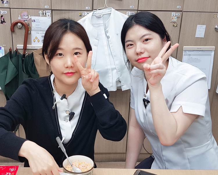 진료를 마치고 편의점에서 구입할 수 있는 재료로 음식 만들기 대회를 했습니다! 상품은 인싸가 될 수 있는 핫 한 이모티콘 ★