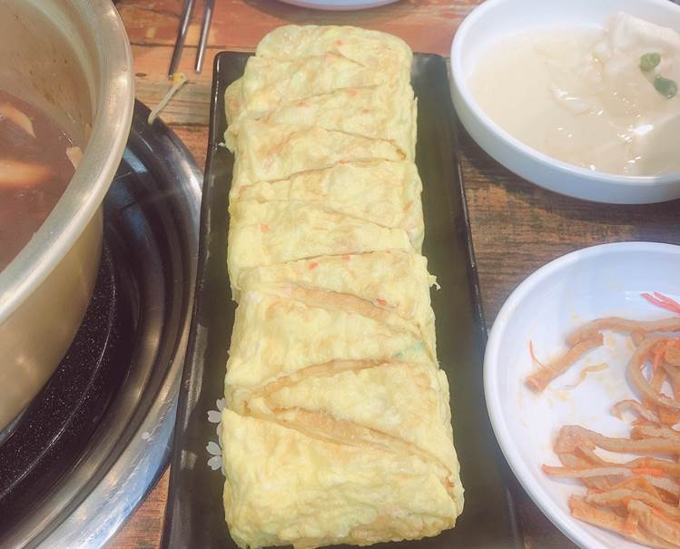 밀전병에 등갈비와 버섯을 넣어 싸먹으면 맛있다고 했는데 정말 맛있었어요..!!! 계란말이도 엄청 두꺼워요~