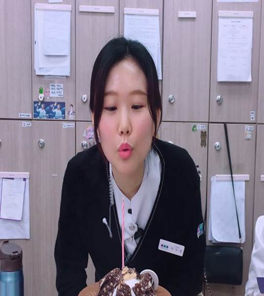 소원을 빌고 촛불을 부는 소녀 이나영 선생님 ㅎㅎ