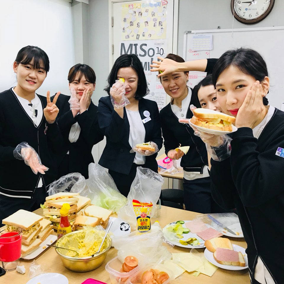 직원들 모두 집에서 각자 맡은 재료를 준비해와서 맛있는 샌드위치를 만들었어요~