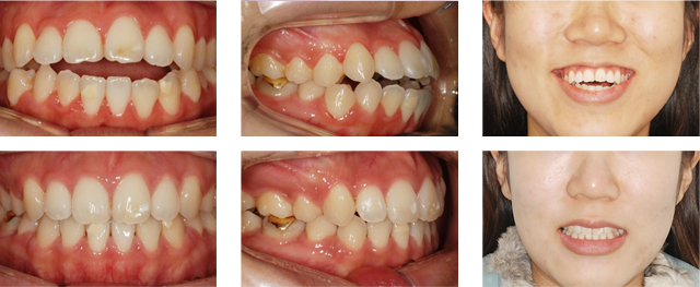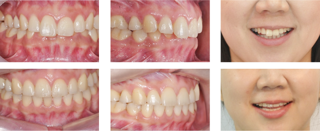 앞니가 서로 물리게 되어 음식물을 씹는 저작 문제와 심미적인 문제가 해결되어 교정을 완료하였습니다.