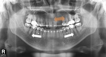 2년 전 식립한 임플란트의 보철물이 탈락된 상태로 1년간 지내오신 25세 여성입니다. 임플란트 식립을 위해 사용한 인공 뿌리를 제거하고 치아가 가지런해 지길 원하셨습니다. 자연치아로만 치료를 진행할 수 있도록 하기 위해 인공 뿌리를 제거하고, 빈 공간으로 치아를 이동시켰습니다.