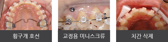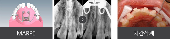 ① 위턱의 골격적 확장을 위해 미니스크류를 이용한 급속구개확장장치(MARPE) 적용