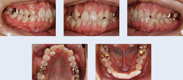 앞니 치열 불규칙하고 어금니가 잘 맞물리지 않아 소리가 나는 증상으로 내원한 22세 대학생입니다. 좌측 위 덧니가 관찰되었고 아래 어금니 배열이 바르지 않아 위 어금니와 정상적인 교합 관계를 보이지 않는 상태였습니다. 이를 빼지 않고 공간을 확보하기 위해 다음의 치료를 진행하였습니다.