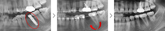 임플란트 제거 후 생긴 빈 공간으로 브라켓을 부착한 사랑니를 이동시켜 추가적인 임플란트 식립이나 보철 치료 없이도 자연스러운 치열을 갖게 되었습니다.