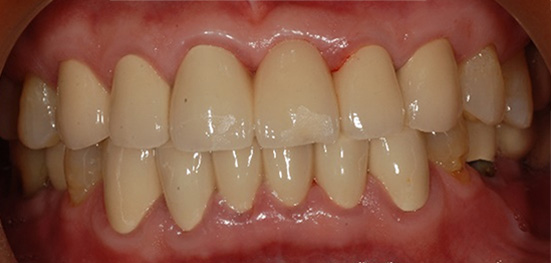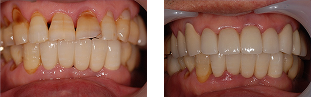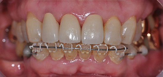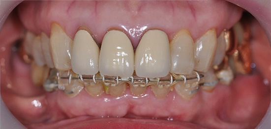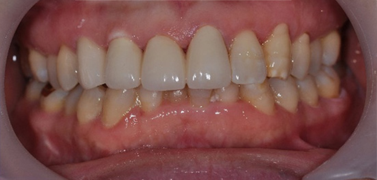 2회에 걸친 치주치료 후 건강한 잇몸에 앞니 보철치료를 하였습니다.