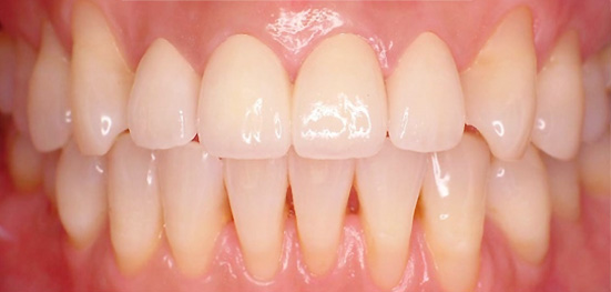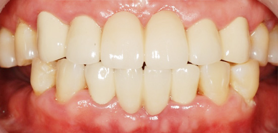 오염된 보철물을 제거하고 잇몸치료 후 최대한 앞니의 심미성과 기능을 복원하여 최대한 자연스러워 보이도록 개선하였습니다.