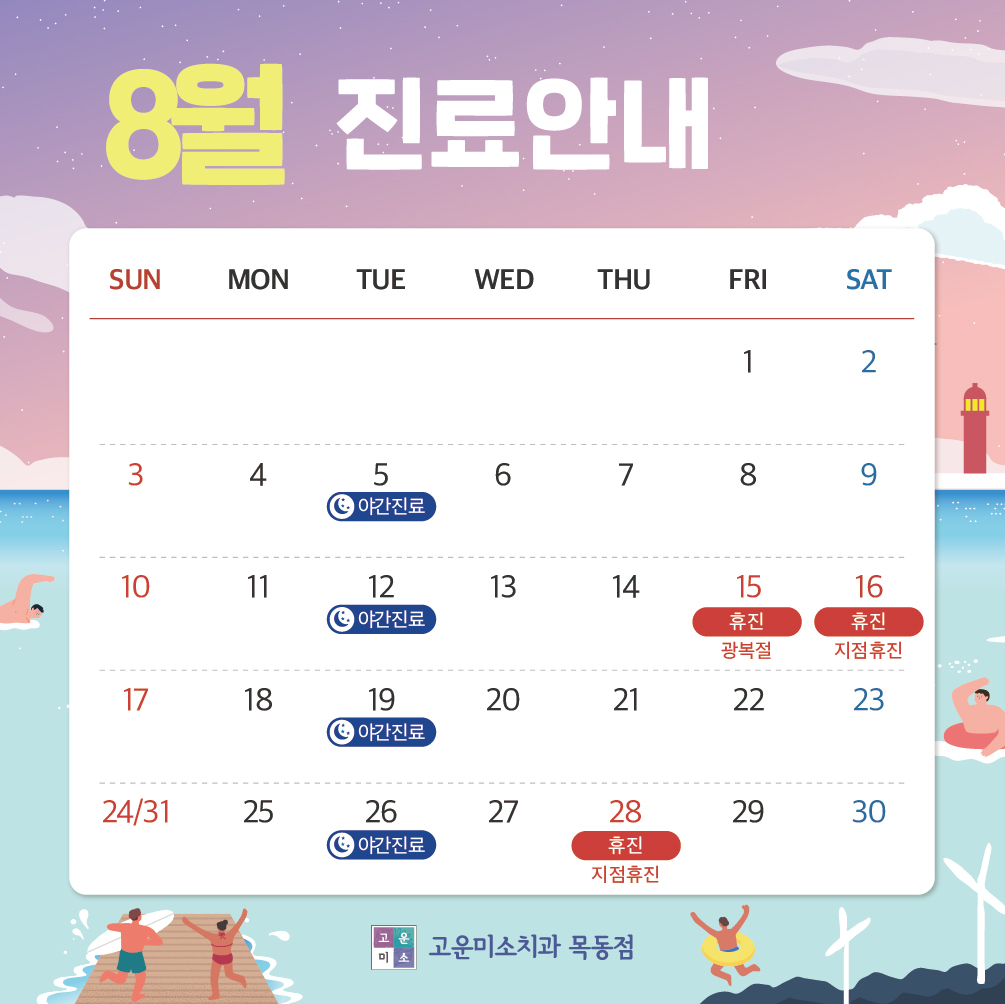 연세고운미소치과 목동점 8월 진료 일정 안내드립니다.
