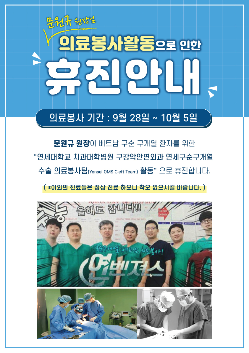 문원규 원장 의료봉사활동으로 인한 휴진안내
