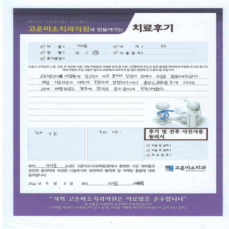 김○윤님의 치아교정 상담이 신청되었습니다.