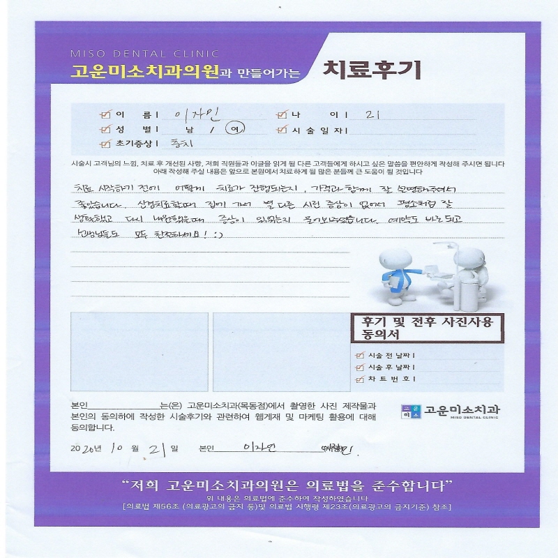 고운미소치과는 2008년부터 연세대학교 치과대학 학생들에게 매년 장학금을 지원하고 있습니다.