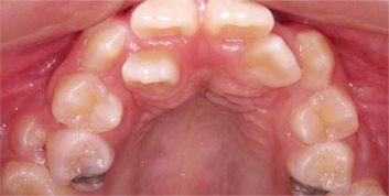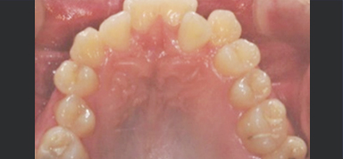 위턱이 수평적으로 좁아져 있어 치아 배열이