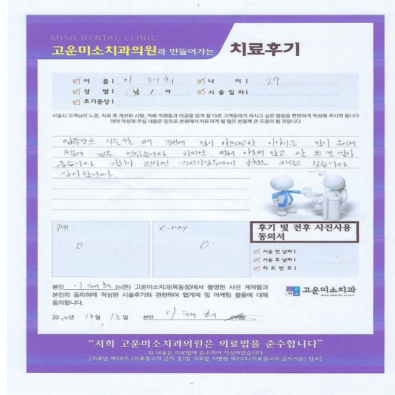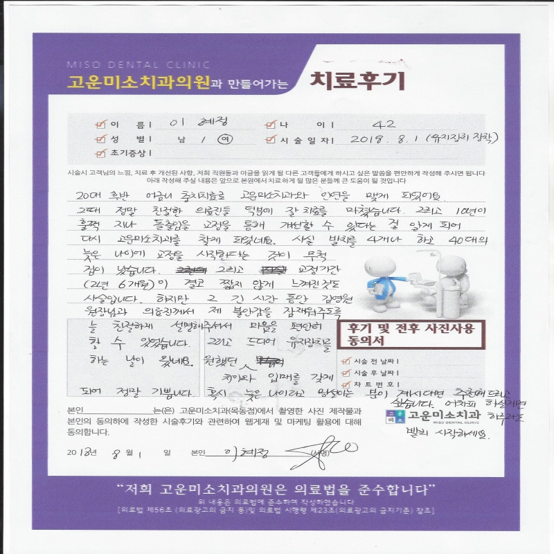 하지 않고 가지런하게 치아교정이 되었습니다.