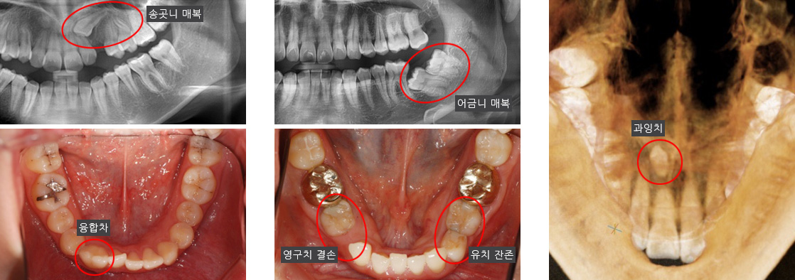 다양한 형태로 치아 맹출 이상이 나타납니다.