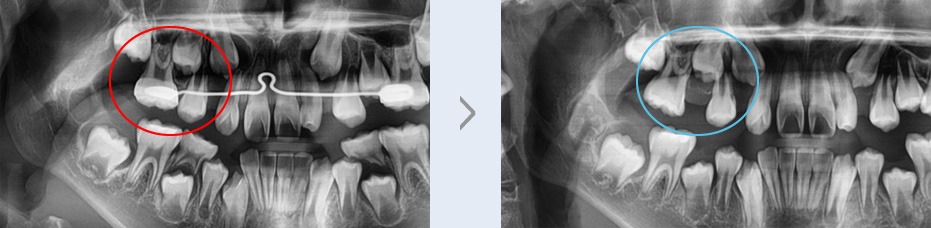 유치 조기 상실의 경우 적절한 치료 시기를 놓친다면 영구치가 매복되거나 심한 덧니로 이어질 수 있는 만큼