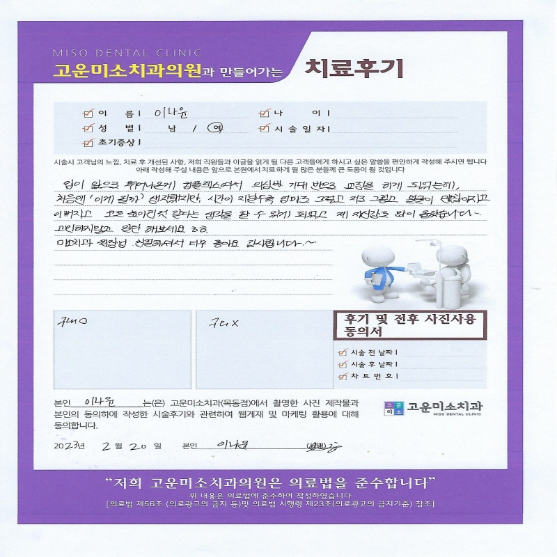 어금니가 정상적으로 자리를 잡지 못해 나타나던 불편함을 해소하였고 위/아래 전체 치아가 자연스럽게