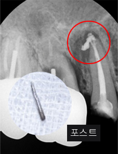 기존 포스트 제거 후 근관내 약재 삽입