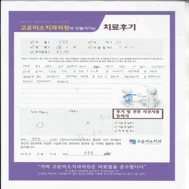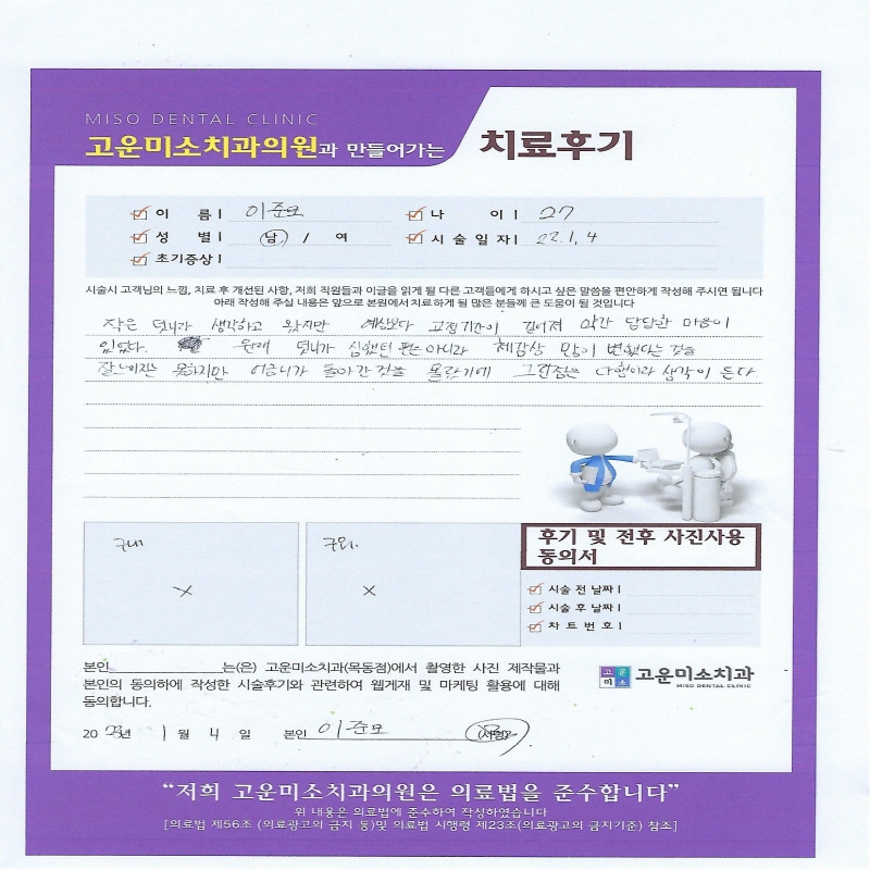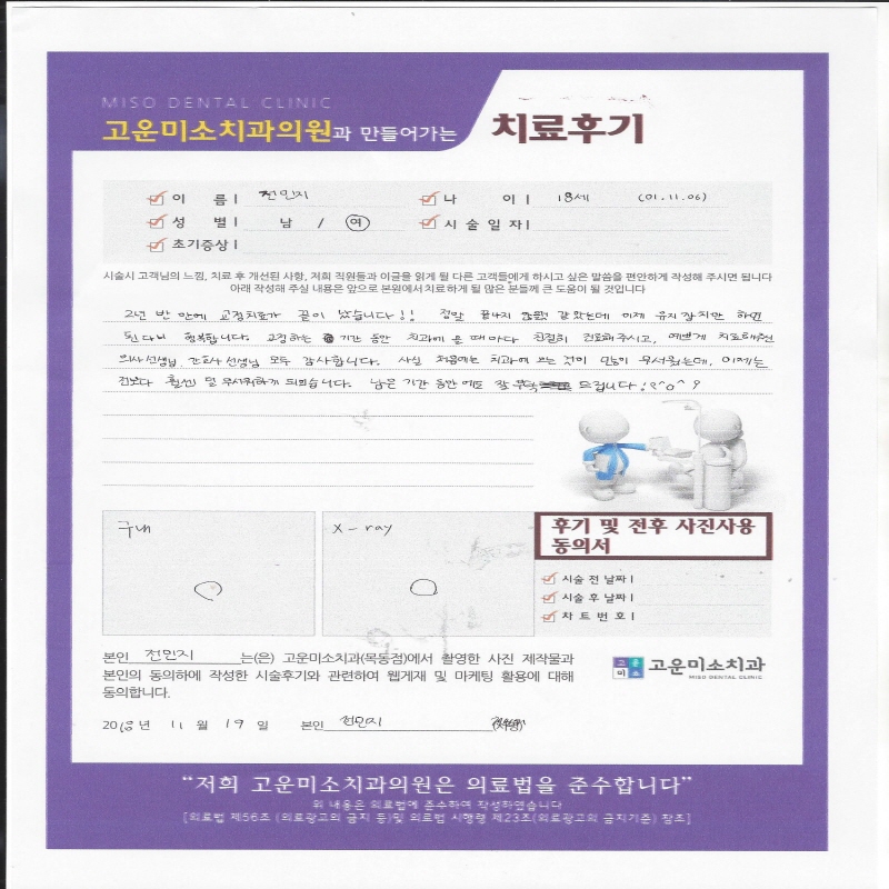 고운미소치과에서 치아를 발치하고 뿌리 쪽 염증을 제거한 후 발치한 치아를 다시 심는 치아재식술을 시행하였습니다.