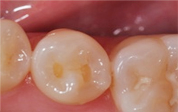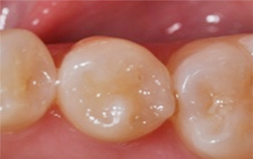 충치로 치아가 일부 손실된 경우 레진으로 복원하여 치아를 보존하였습니다.