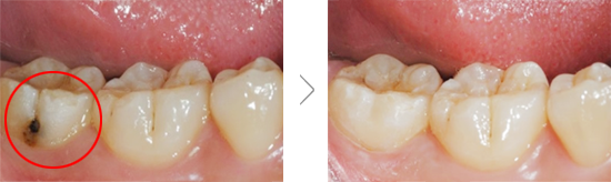 충치로 인해 치아 경조직의 손상이 있는 경우 치과용 재료로 치아를 충전하여 기능을 회복하는 치료입니다.