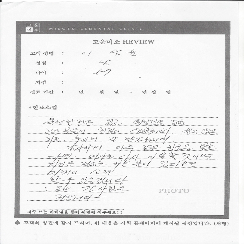 치주치료 등 필요한 보존치료를 안정적으로 한 후 레진 치료를 하는 것이 중요합니다.