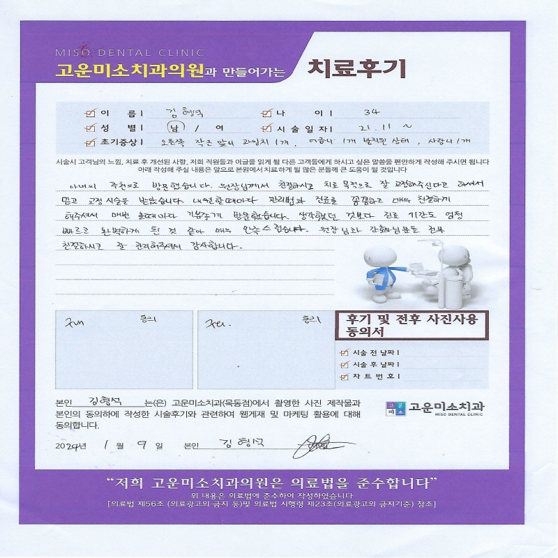 넘어져 치아가 부러진 경우 레진으로 복원하여 본래 치아 모양과 기능을 회복