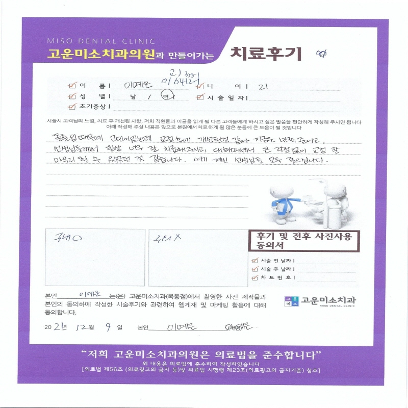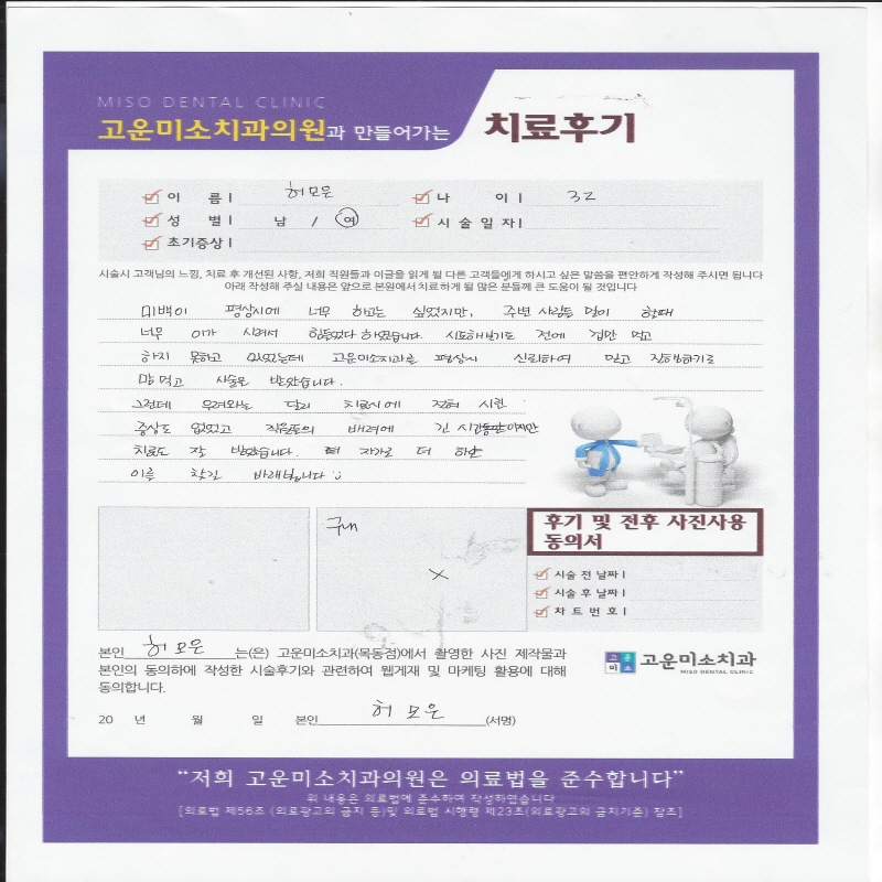 2. 고운미소에서는 통증이 걱정이신 분들께 가글 마취를 시행하고, 입술이 건조해지지 않게 보호제를 발라드리는 등의